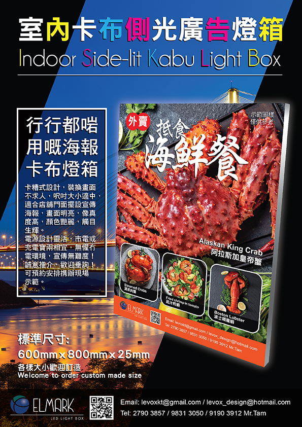 無論是宣傳產品,推介新菜式,都無懈可擊,更是展覧會攤位吸引人流的利器!不妨考慮,用卡布燈箱展示買公司的新產品。